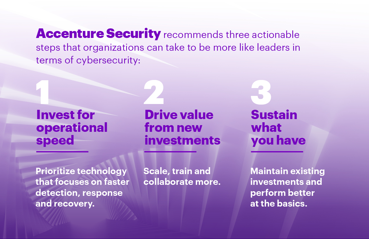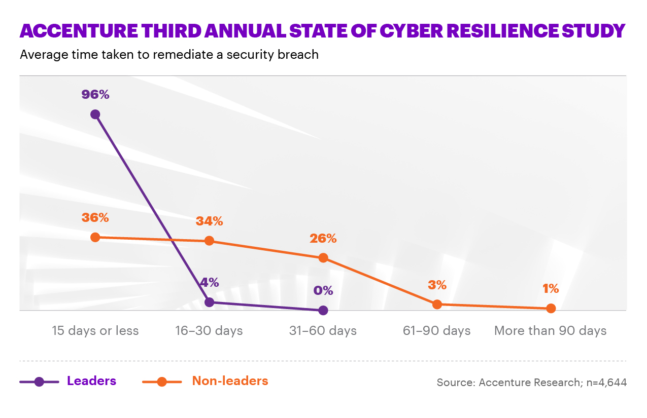 “Our analysis identifies a group of standout organizations that appear to have cracked the code of cybersecurity when it comes to best practices,” said Kelly Bissell, who leads Accenture Security globally. “Leaders in our survey are far quicker at detecting a breach, mobilizing their response, minimizing the damage and getting operations back to normal.”